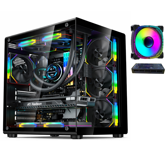 GABINETE GAMER CUBE MEDIA TORRE ATX FAN SOLAR X 8 NEGRO